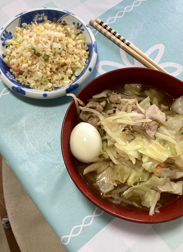 昼食のラーメンに浮かぶ玉子。月に見立てて(かなり無理やりですが)お月見です!!