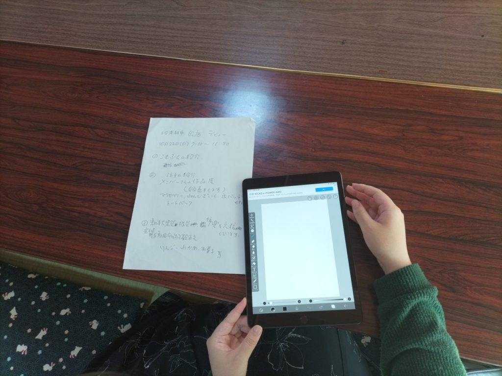今日は、メンバーさんが居場所プログラムでipadに取組んでいます。