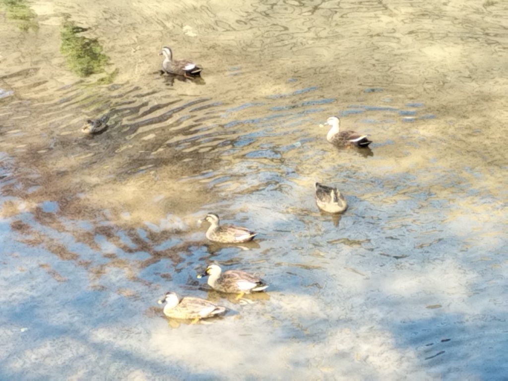 磯部川の鴨さんたち、気持ちよさそうに泳いでいます。