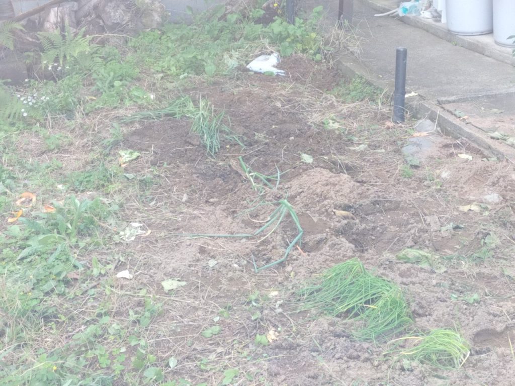 そして、枝豆を抜いた後に、ネギと、分葱、ニラを移植しました。