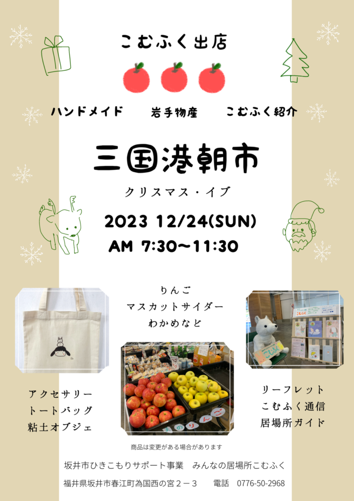 今度の日曜日、12月24日は、三国港朝市に出店予定ですが、寒くなりそうです。