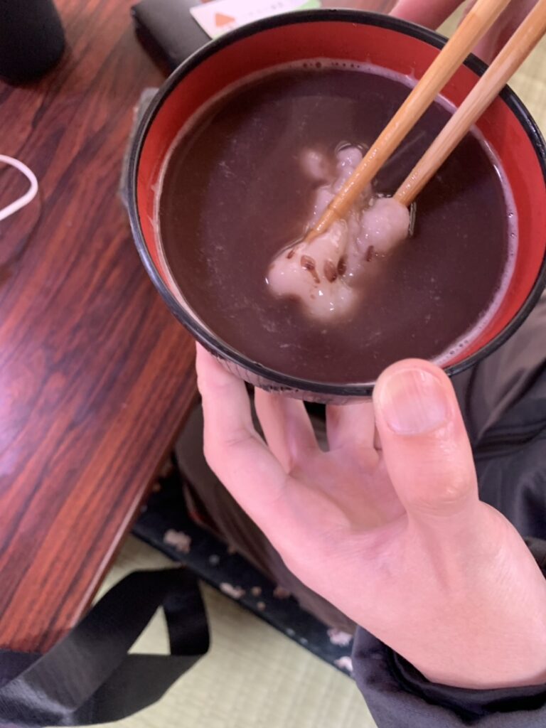 作ったといってもレトルトぜんざいに、レンチンして柔らかくしたお餅を入れただけですが。