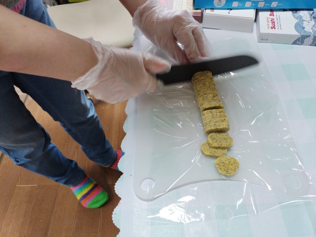 Mさんが、一緒に紅茶クッキーづくりを手伝ってくれました。
