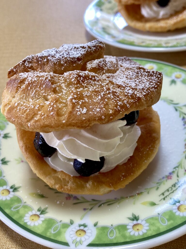 簡易にできるレシピに沿って作ったので、くろうささん的にはシュー皮のふくらみが完璧ではなかったようですが、とっても美味しそうに焼きあがっています!