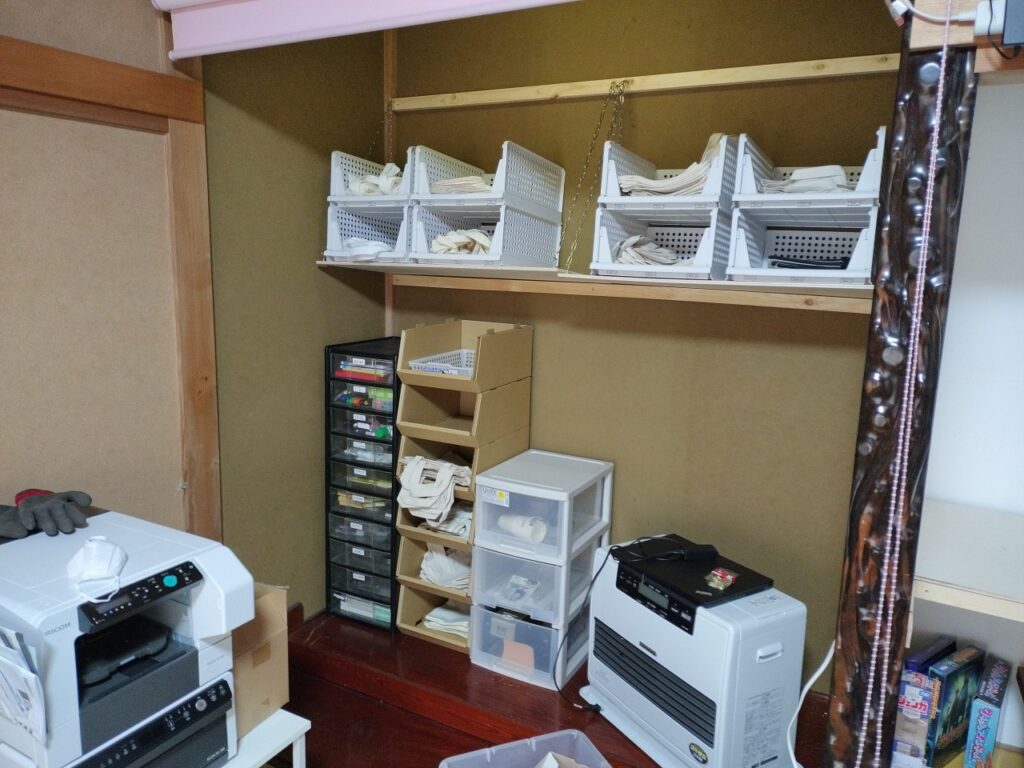 ガーメント印刷用のトートバッグや資材を置くための棚を作りました。