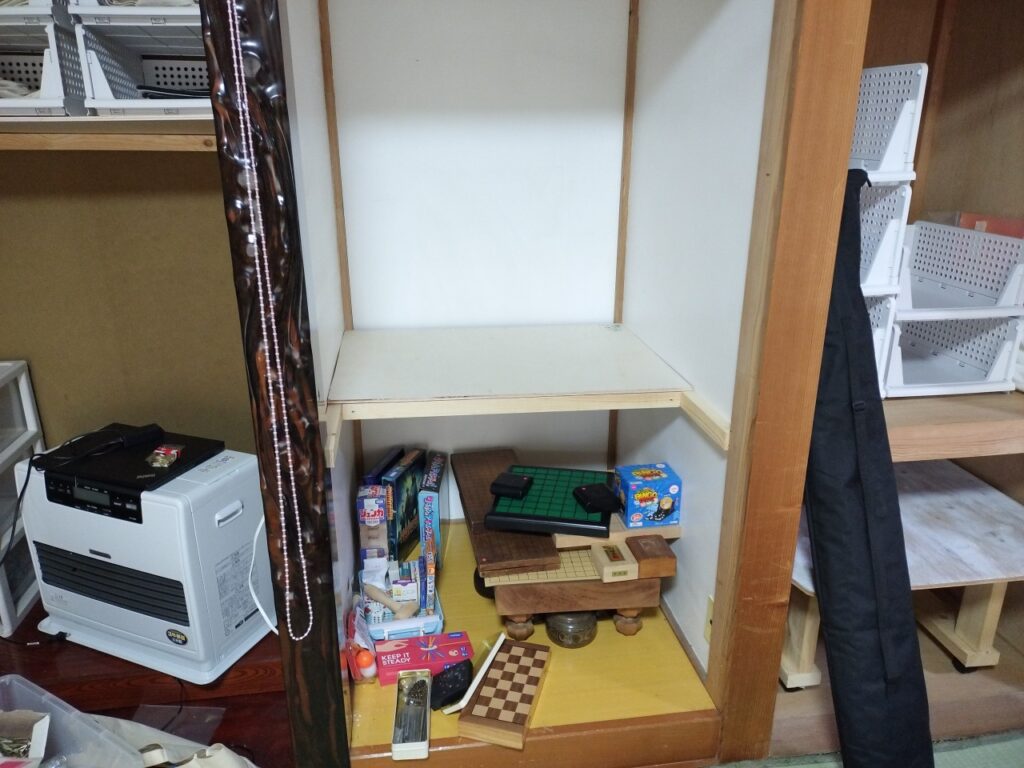 次に、ゲームを整理するために、押入に(仏間ですね)棚を作りました。