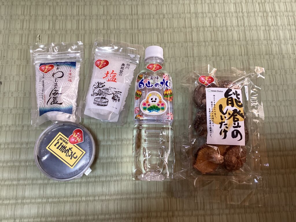 本日は、4月7日に出店予定の三国港朝市で販売する、石川県、能登半島の商品販売の準備をしました。主に「買って応援」のハート形のシールを販売する商品1つ1つに貼るといった内容です。
