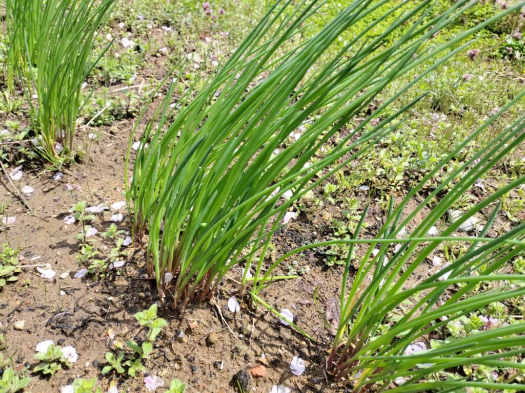ニラや分葱は、冬の間は全く姿を隠していましたが、暖かくなりグングンとその姿を現しました。