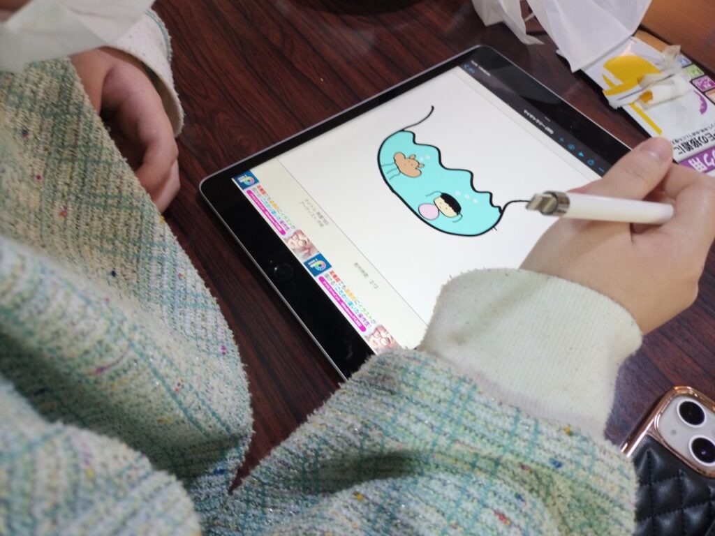 そして、イラストレーターナッツちゃんは、いつもの調子でipadに向かっています。