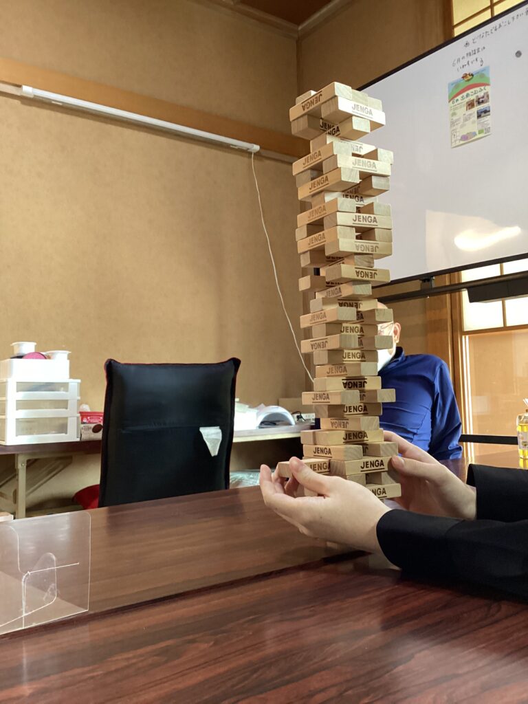 お昼からは、ジェンガをしました。普段あまり遊ばなかったのですが、やってみるととても面白かったです。