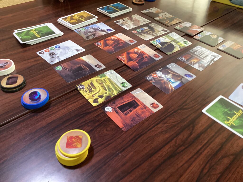 今日のこむふくでは、新しく仕入れたゲーム「Splendor~宝石の煌めき~」というボードゲームで遊んでみました。