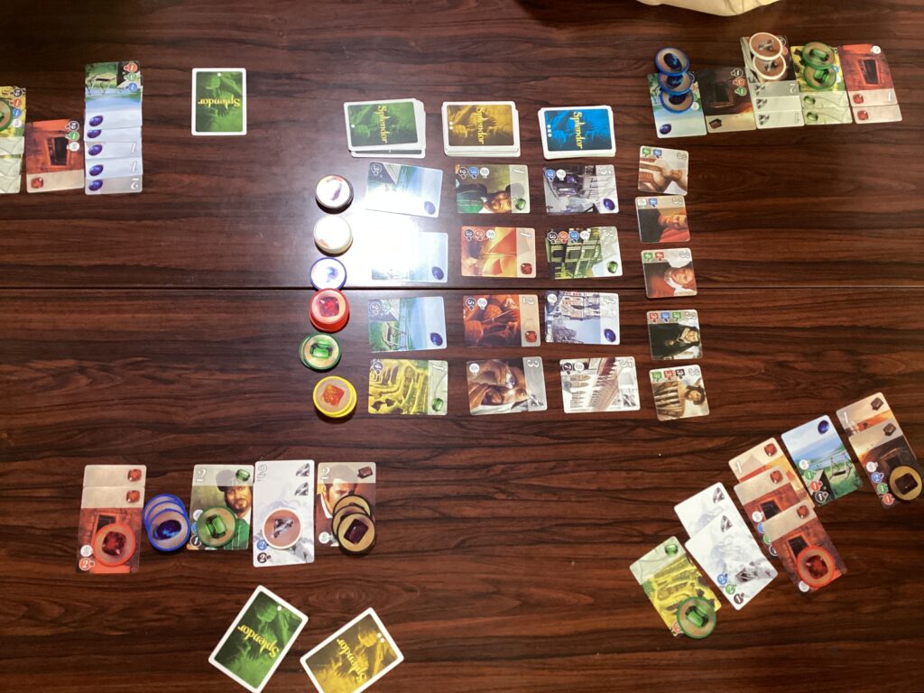綺麗な宝石のコインを使って、カードと交換しながらポイントを集めていくゲームです。