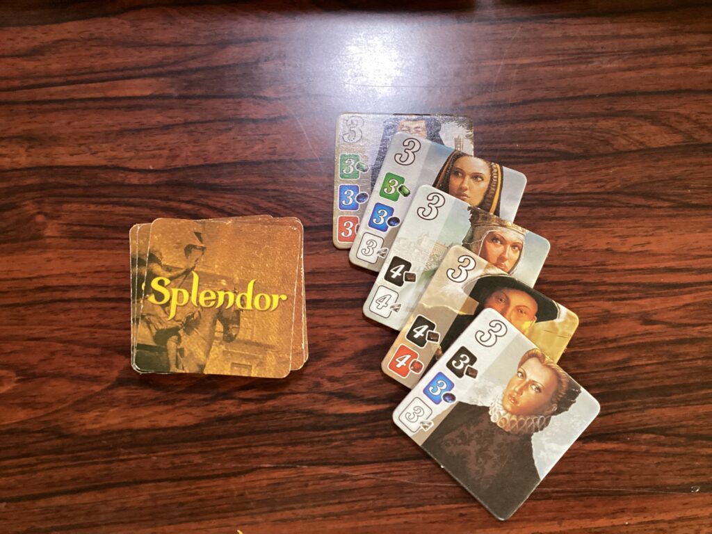 背面の色が緑→黄→青の順に、カードの平均コストが上がっていきます。緑は最高1ポイントまでですが、青は最高5ポイントまで取れます。