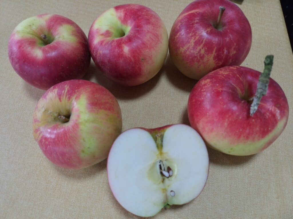 とてもリンゴらしい酸味の強い品種です。早生ですので、柔らかくなり始めています。