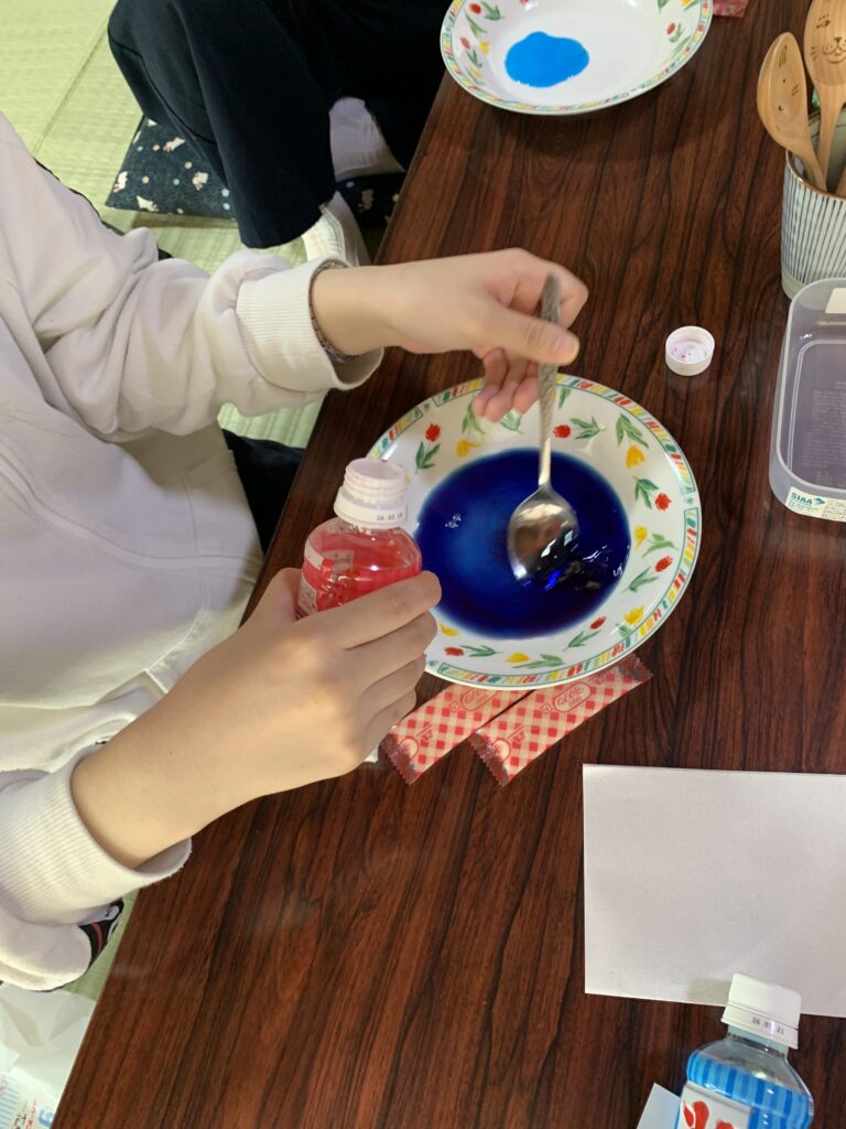 みなさんスムーズに着色、シロップを何色か混ぜていいかんじです。