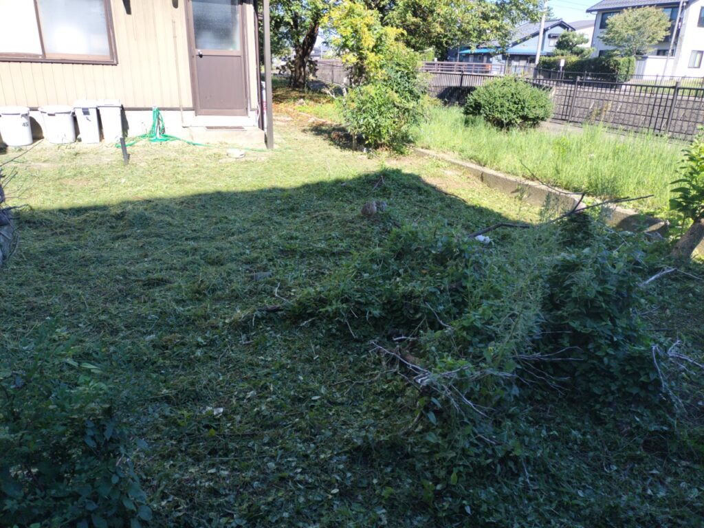 8時ではすでに暑いのですが、8時前から刈払機のエンジンをかけるには近所迷惑になります。ギリギリ8時からスタートです。