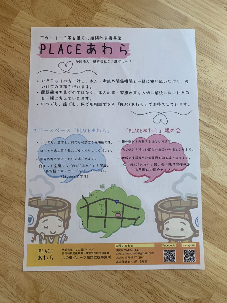 PLACEあわらに、心配なことや好きなことぜひお話しに行ってみてほしいです。