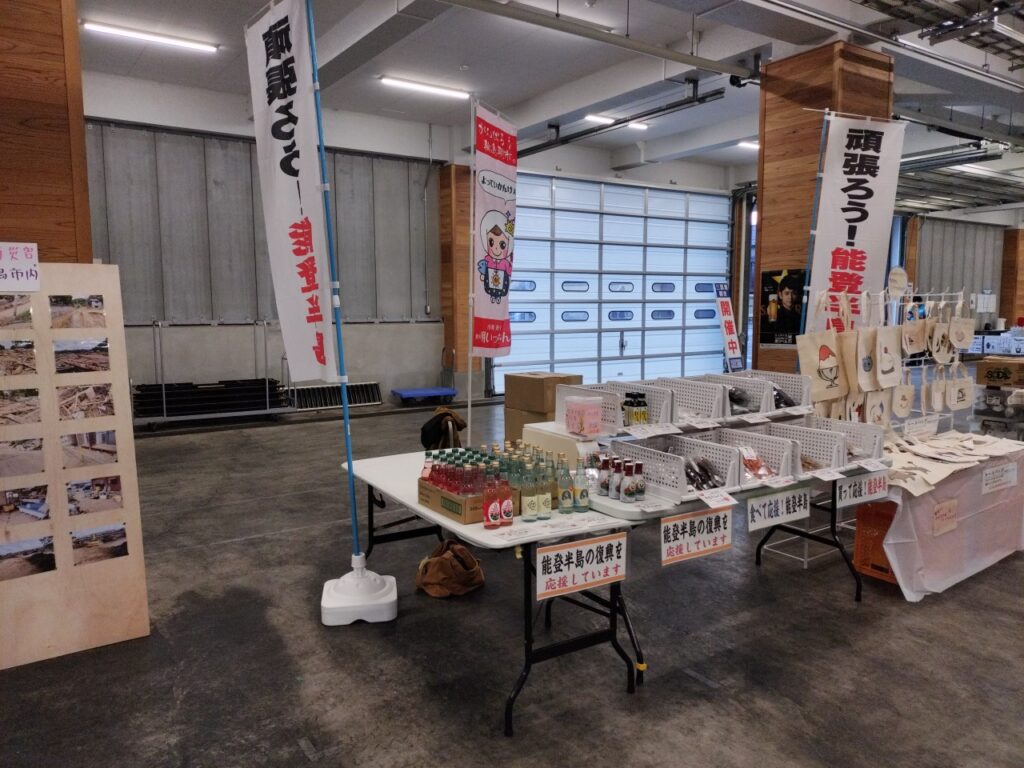 今回は、いつもの通りに能登半島応援物産販売、こむふくオリジナルトートバッグ販売、そして能登半島豪雨の写真展示をしました。