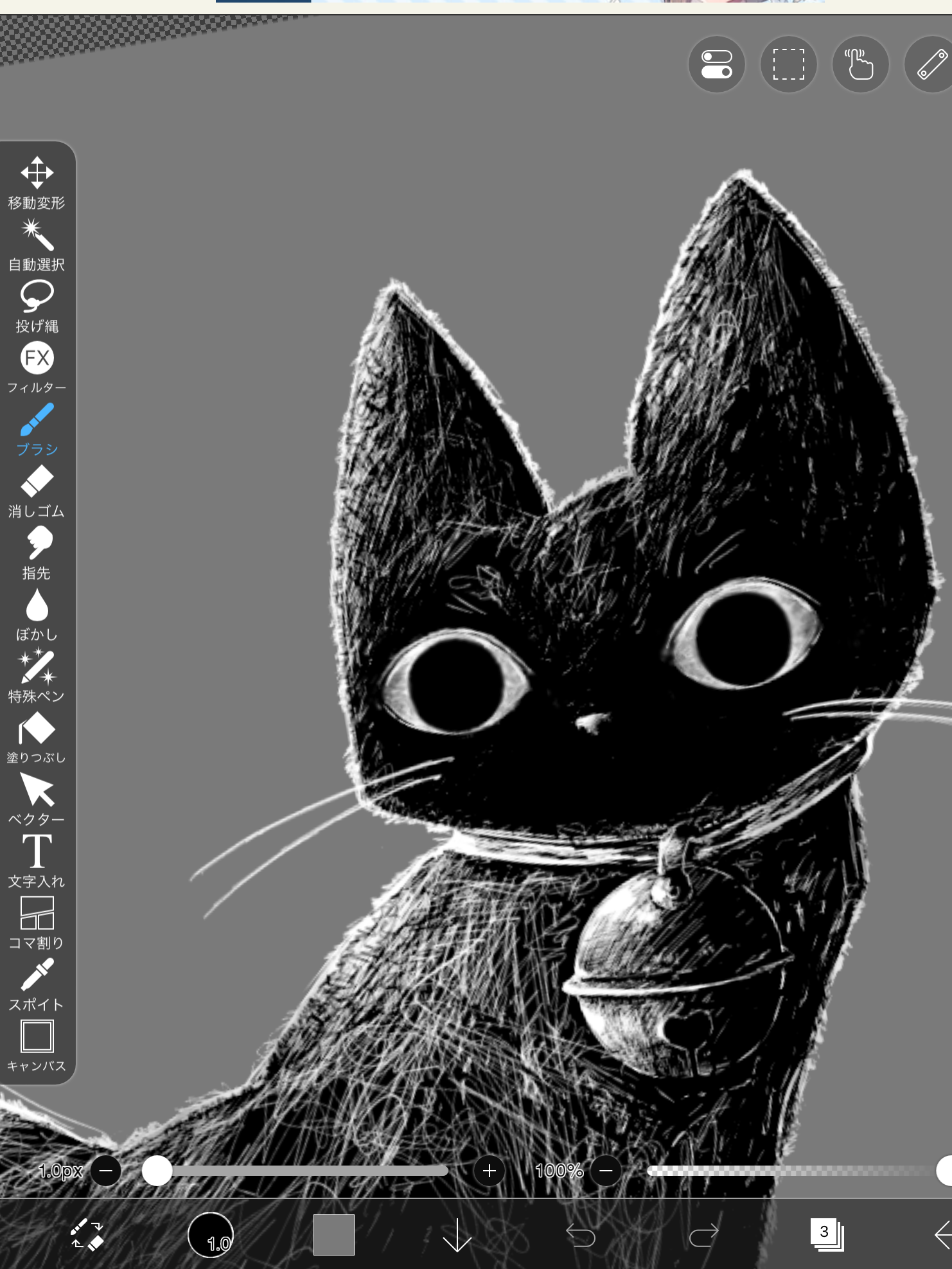以前作った黒猫が好評のようなので、今日は第二弾の黒猫のイラストを仕上げていました。