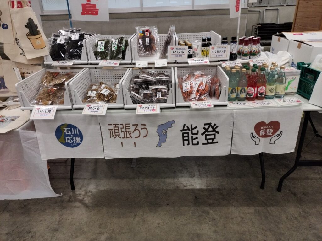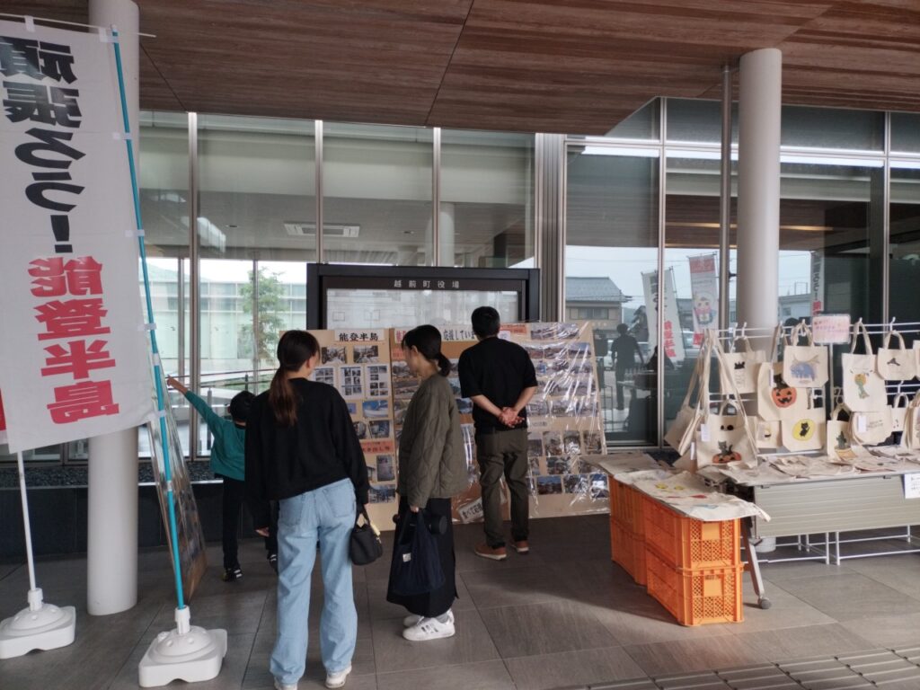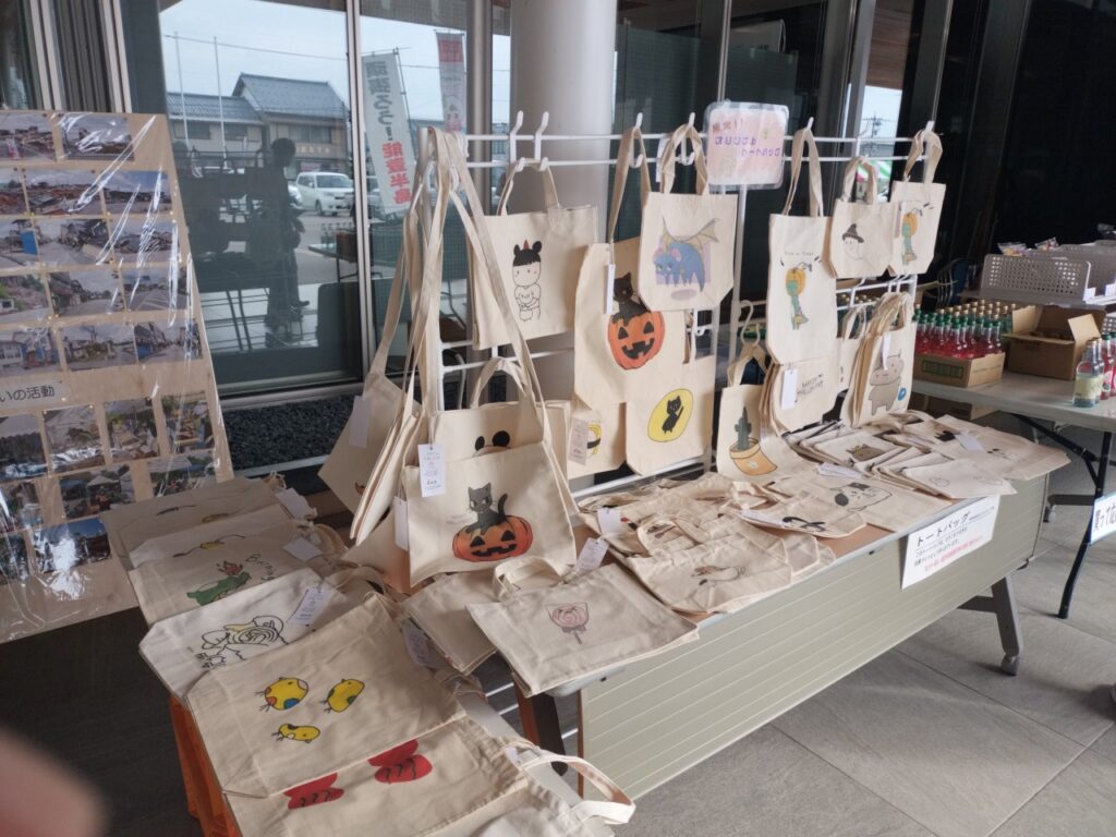 えちぜん福祉のつどいで、能登支援物産販売とこむふくトートバッグの販売。