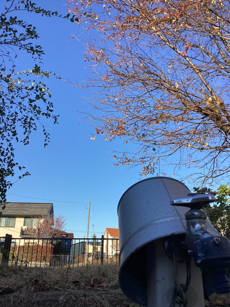 外に出て写真を撮ろうとしたら、蛇口がバケツをかぶっていたので思わず写真を撮りました。