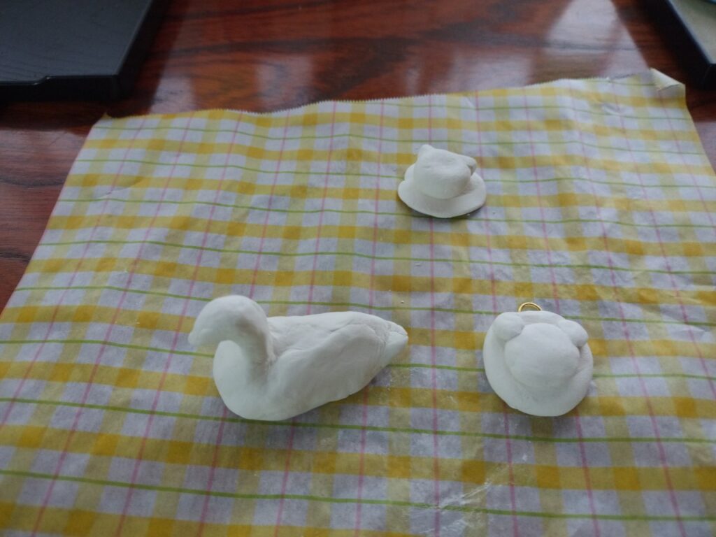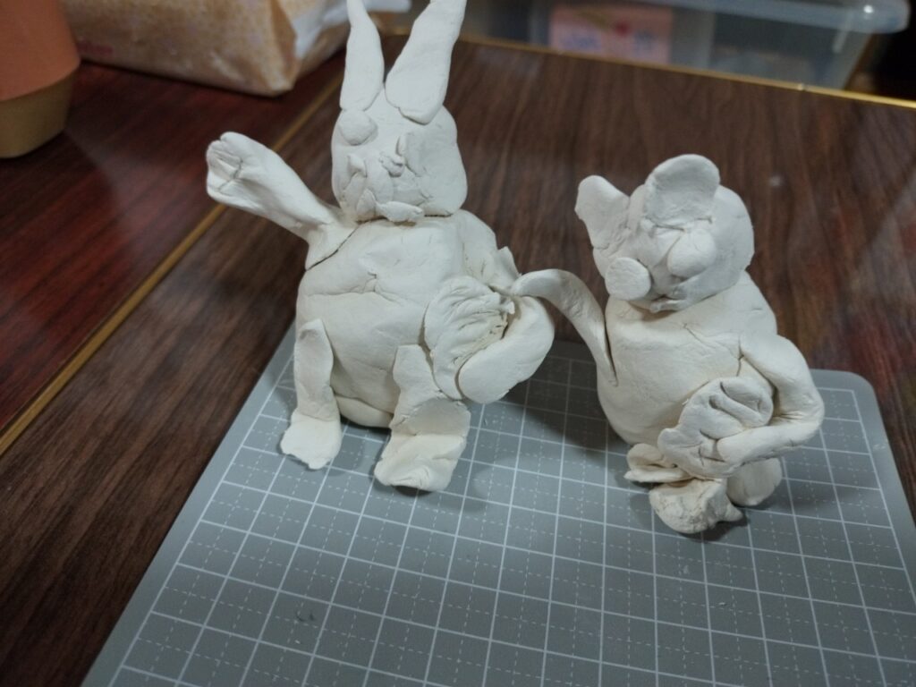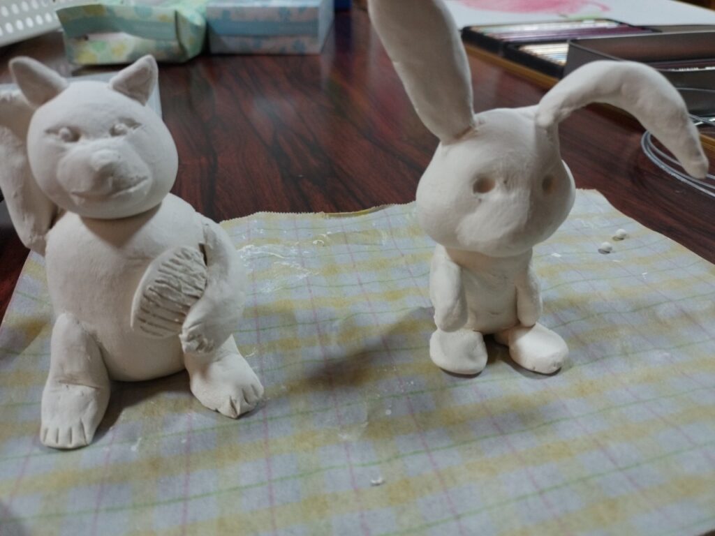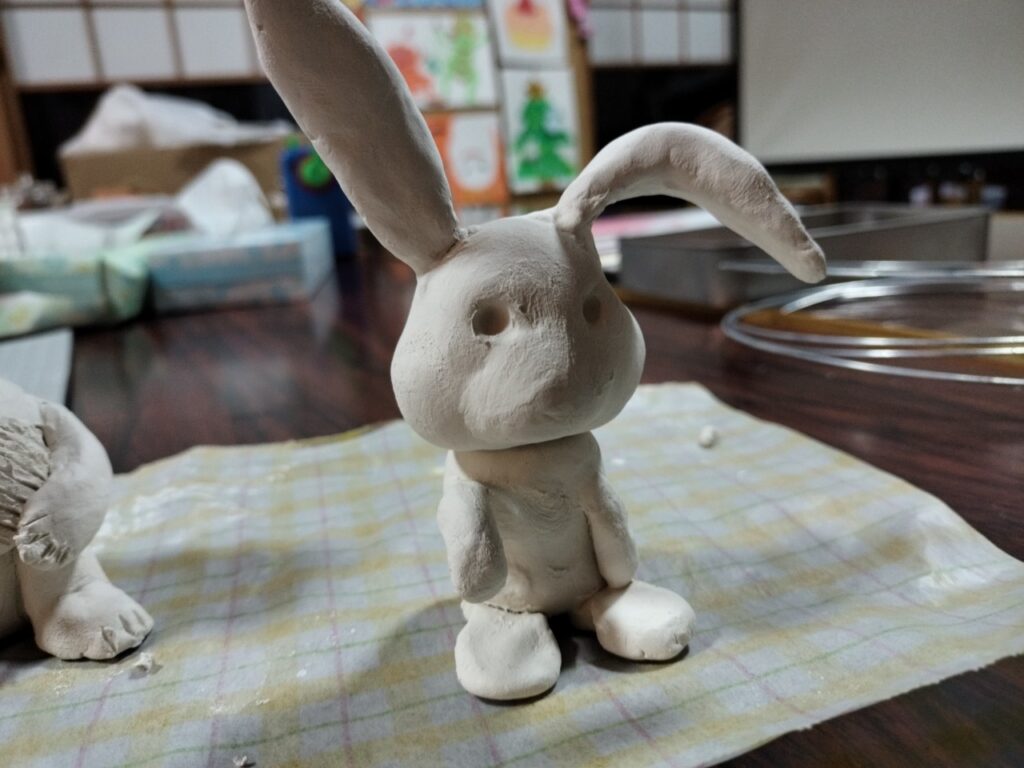 作りかけの粘土細工がこむふく広場内に点在しています。