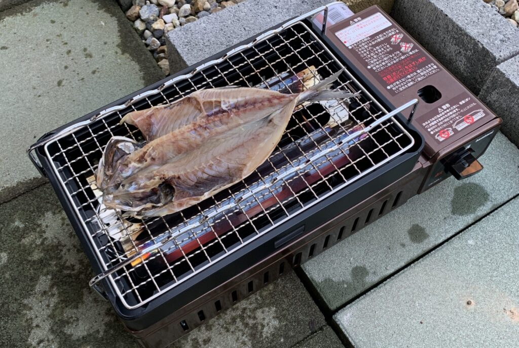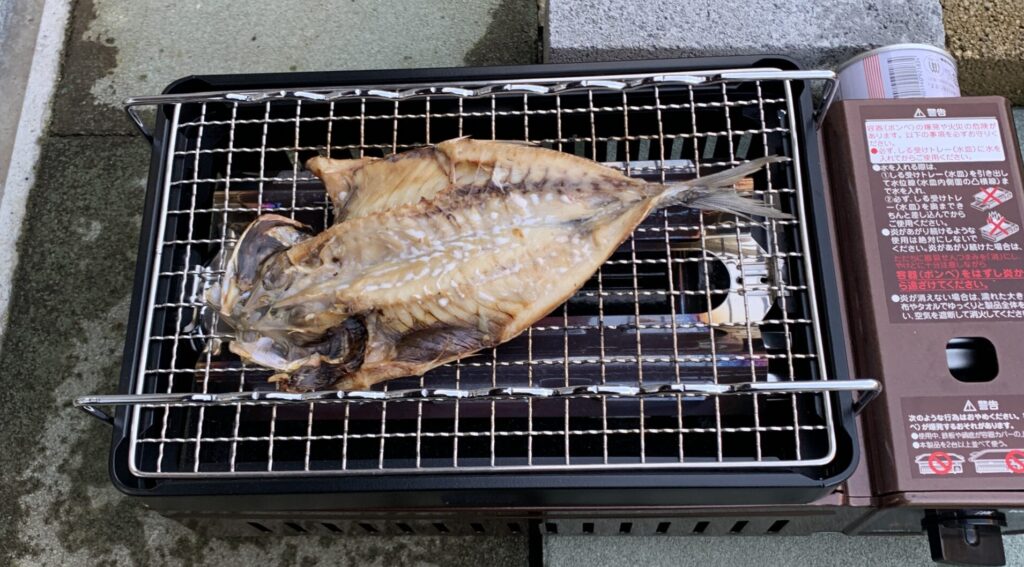 この網焼き器、テレビで海辺を旅する番組を見たときに映っていて、ほしくなってネットで衝動買いしたものです。一度も使わず台所にしまってありましたが探してついに使いました。魚を焼くのにすごく手軽で良いです。