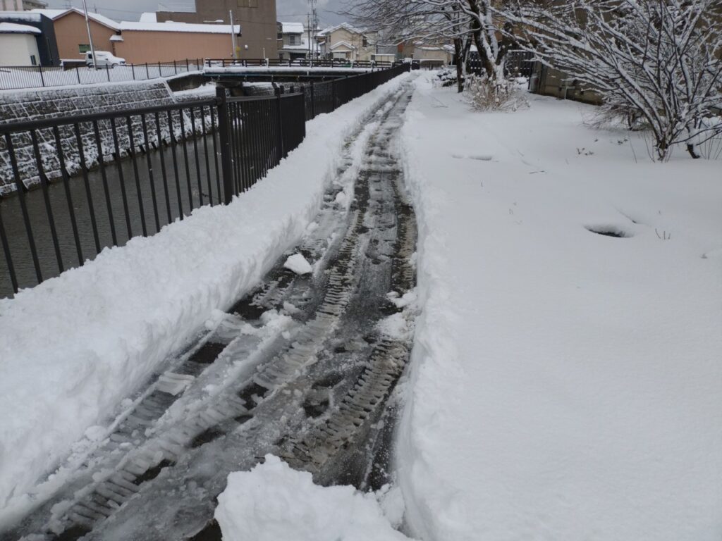 こむふく駐車場を除雪した後は、磯部川沿いの遊歩道を除雪しました。