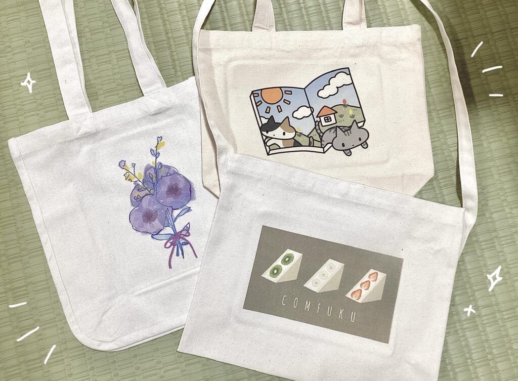 トートバッグに絵を印刷する作業はいつもタコの足さんがやってくれていて、私が印刷するのは数ヶ月ぶり。やり方を思いっきり忘却していたので、途中でタコの足さんとくろうささんに助けを求めました。スタッフのみなさん、いつも本当にありがとうございます。