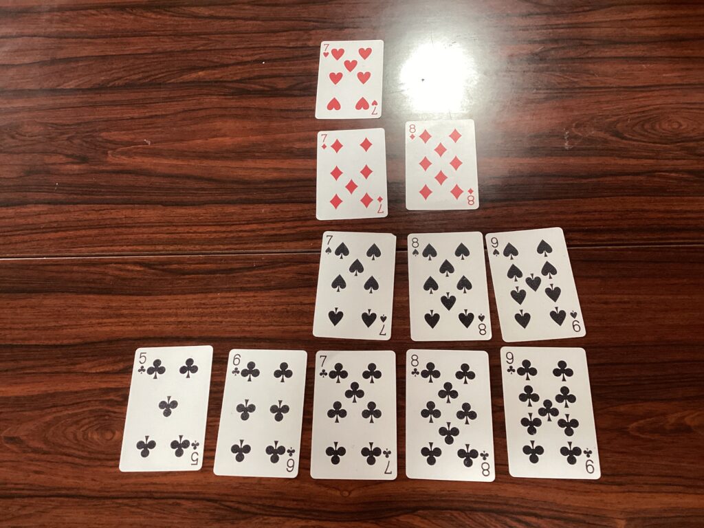 今回の初戦。私の手札はかなり美しかった。というより相当な幸運が舞い降りたとでもいうように、私の手元には7が並んでいた。