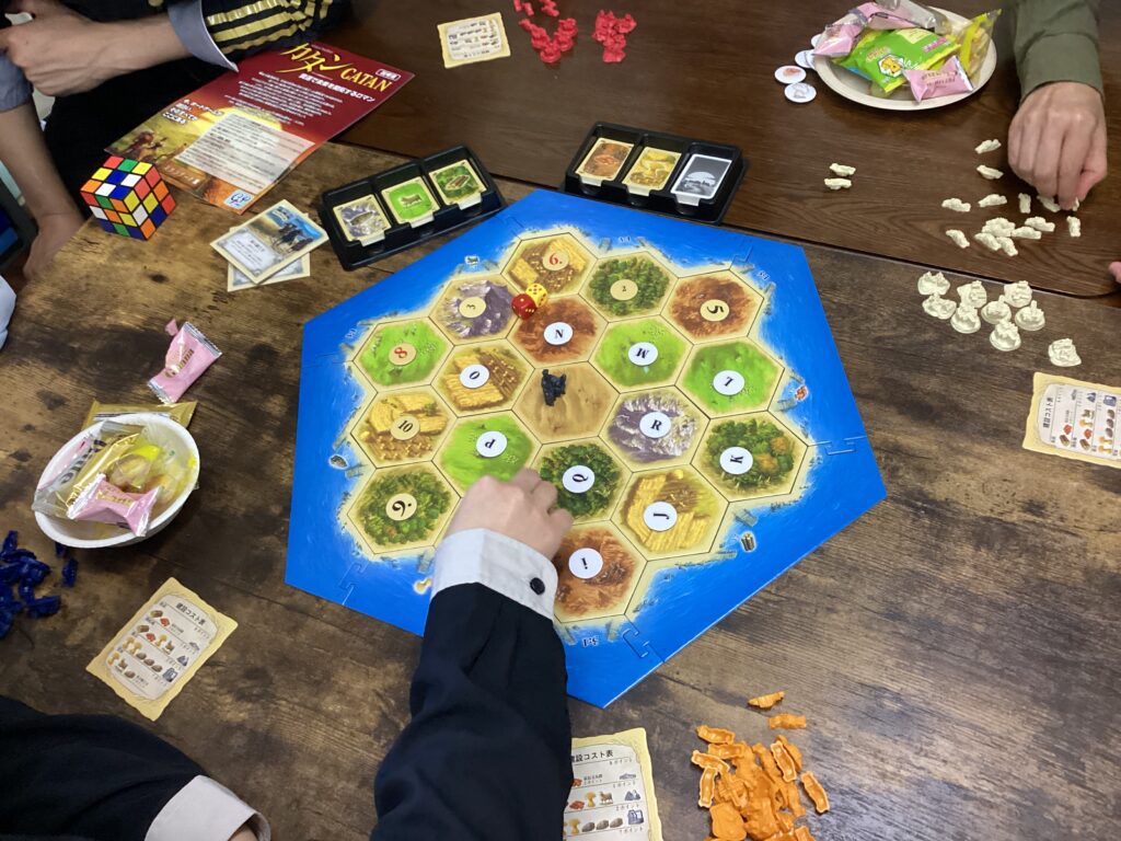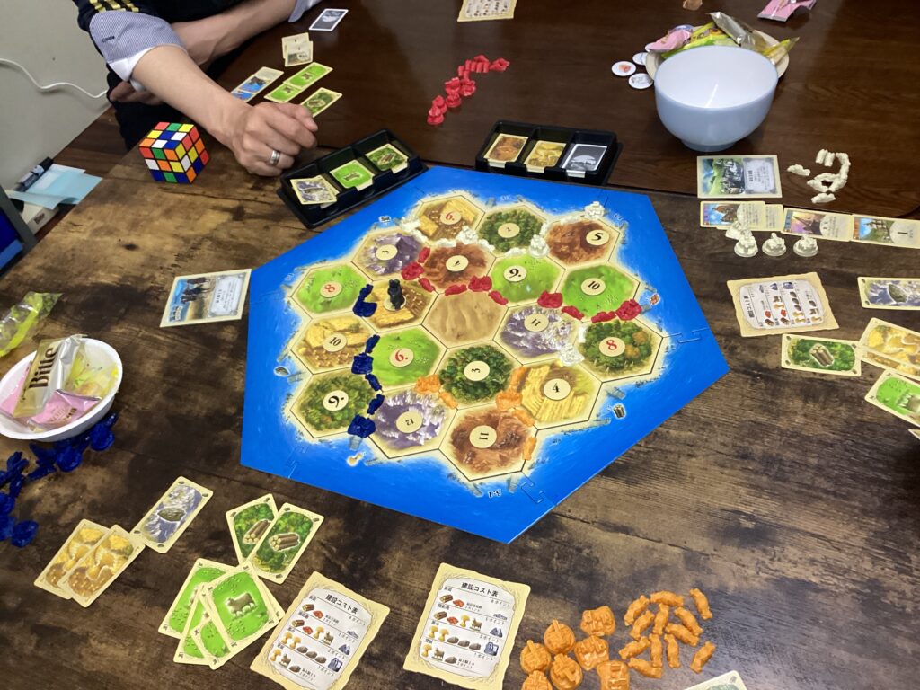 カタンをちゃんと遊ぶのは初めてだったので、タコの足さんに都度説明してもらいながら進めていきました。