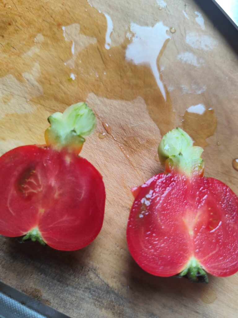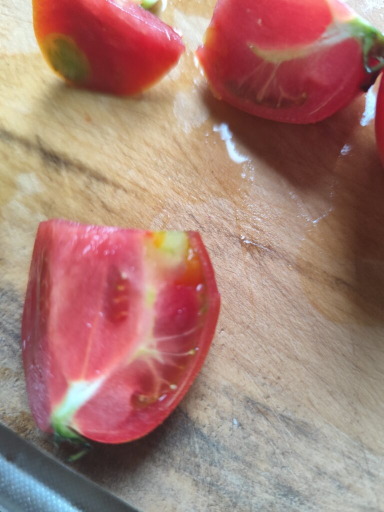 大安売りのトマトを購入したら、全てのトマトに枝がはえてました