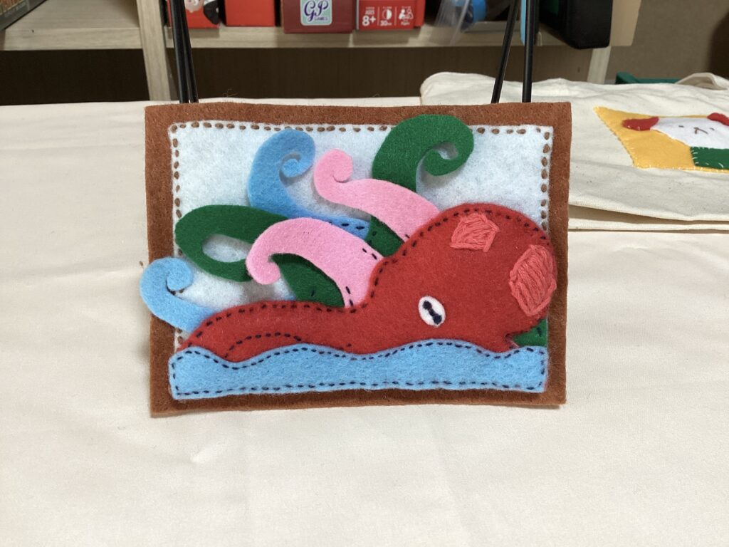 今日はインスタにタコのフェルト細工を投稿しました。以前ゆるゆるフェルト会で作成し始めたやつです。し始めたというのは、完成したのは最近で先週までずっと作り続けていたということです。