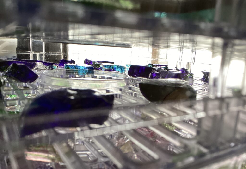 並べ終えたら重ねて乾燥機にセットします。隙間からのぞいた様子は、宝石の低層アパートといった感じで光に反射させるとかなり美しいです。