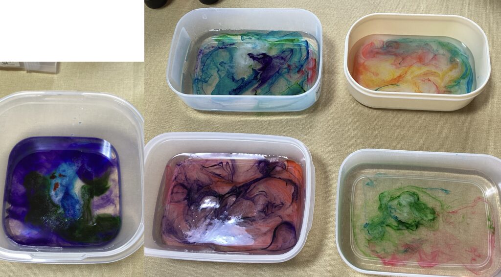 今日は、琥珀糖の色付けをしました。なぜ琥珀糖作りではなく色付けと限定したか。それは制作までの段階は全てくろうささんに頼る形で、我々は美味しいところだけ参加させていただいたといった様な形式だったからです。とても楽しかったです。