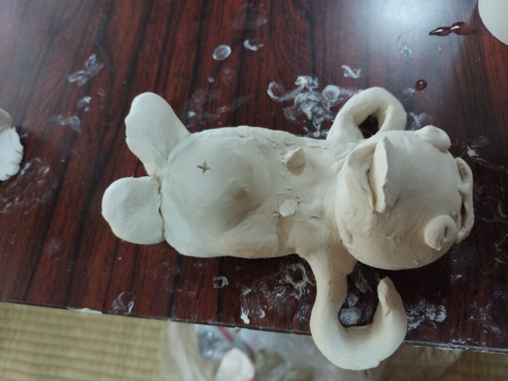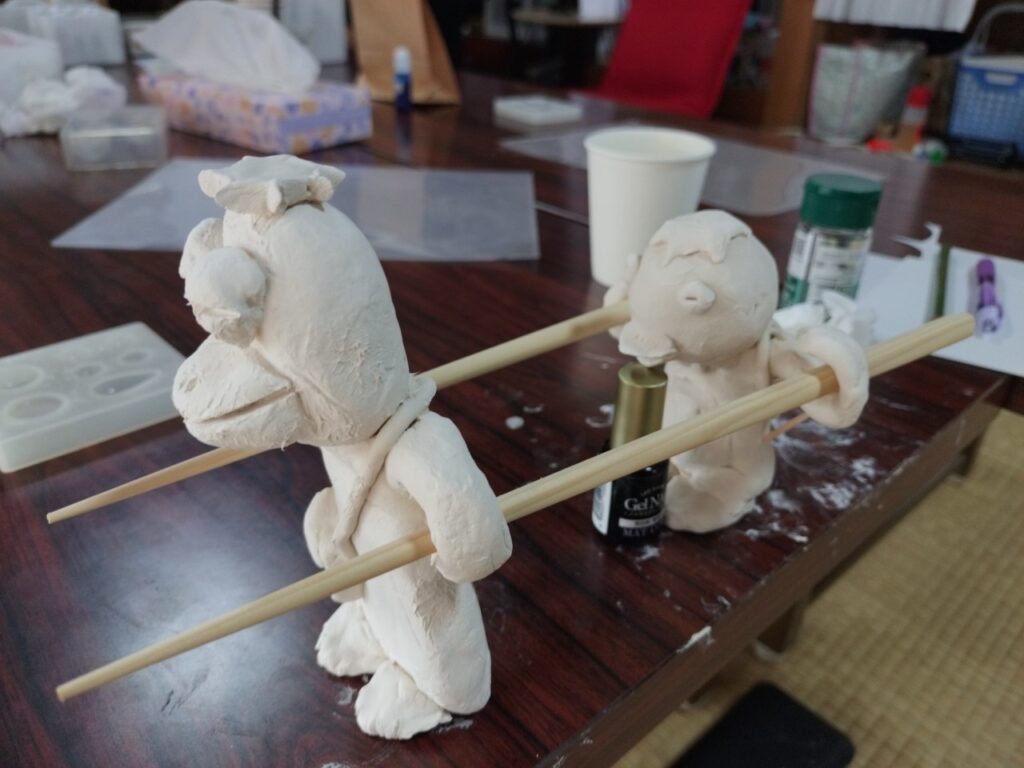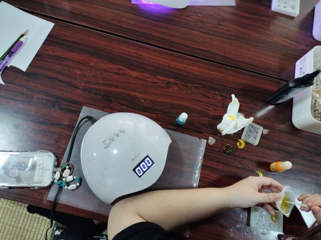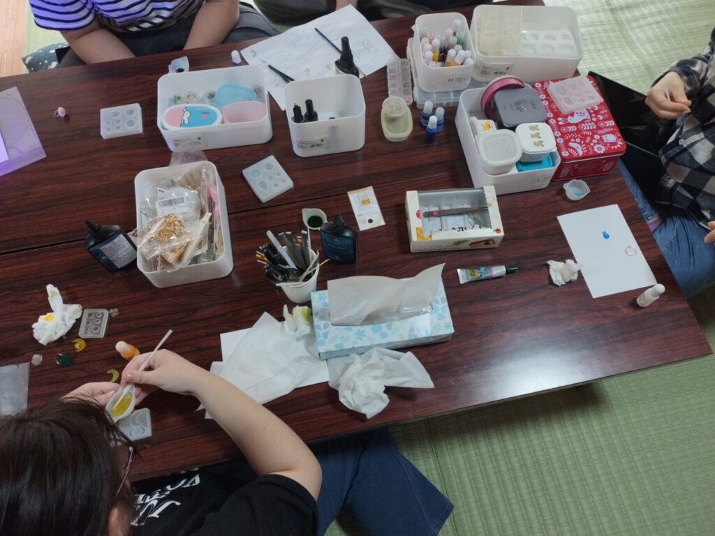 みんなでレジンでアクセサリー作り、そして私は粘土細工。