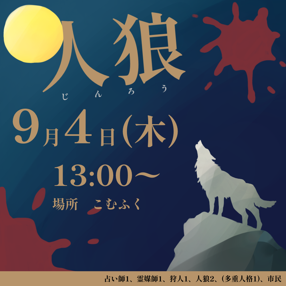 今日は人狼も遊びました。今度9/4(木)にこむふくで開催する人狼会に向けて、お試しで遊んでみました。