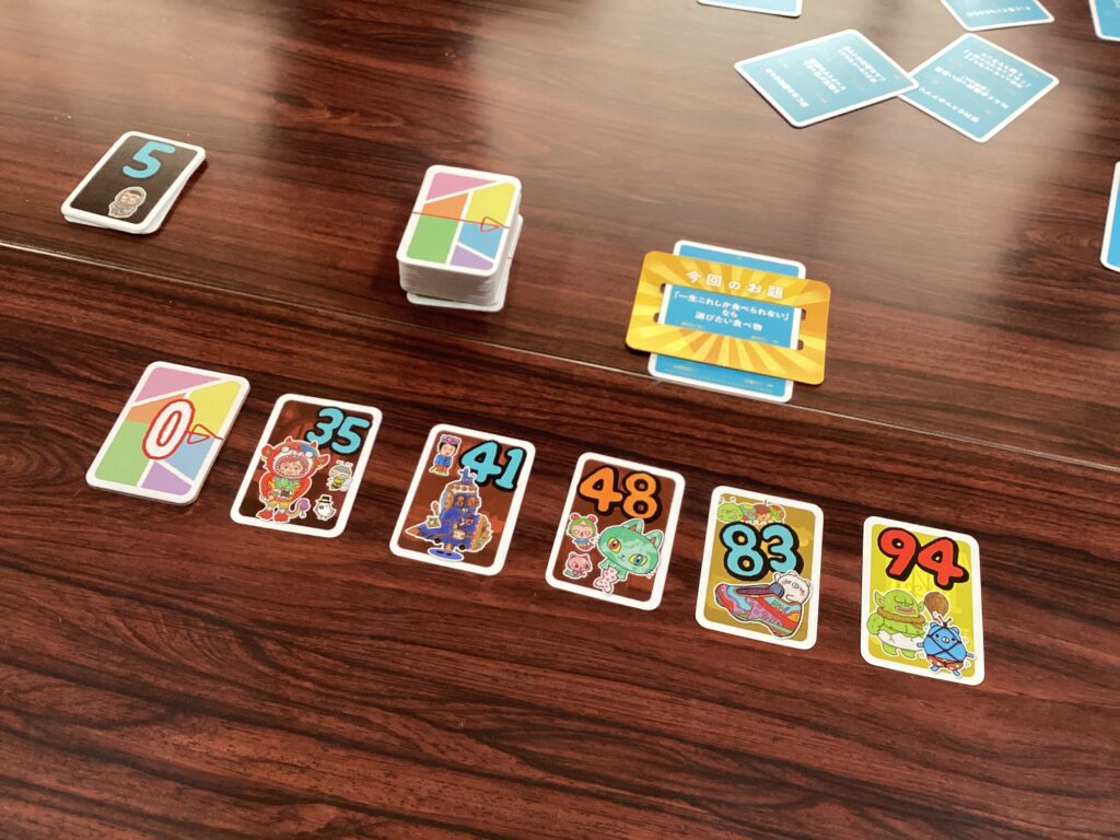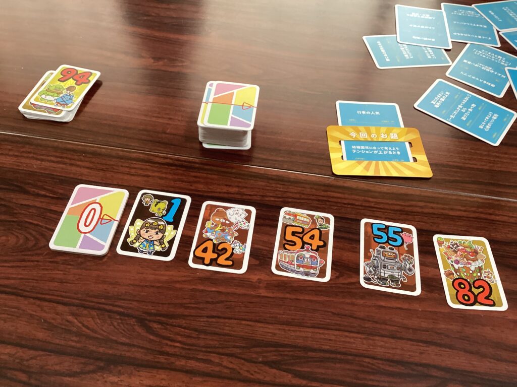 プレイヤーにはそれぞれ1〜100までのいずれかの数字を一枚配られ、お題が公開されます。