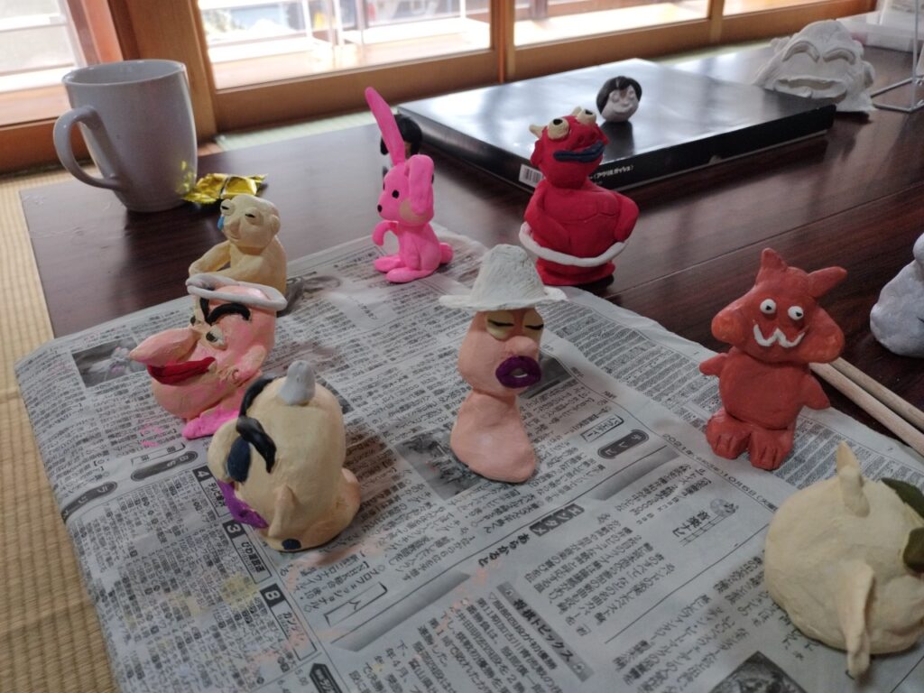 ということで、河童やいろいろと妖怪っぽいのを粘土で作っています。