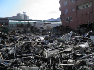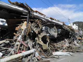 このような瓦礫の中で、このようなボランティアセンターを立ち上げて。