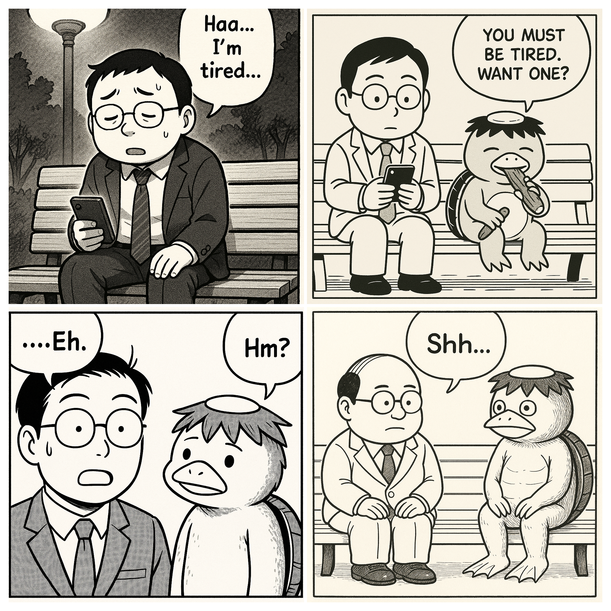 ChatGPTは、4コマ漫画が嫌いなのか、超手抜きっぽい感じです。