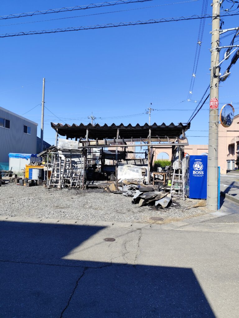 翌朝、50メートルも離れてない近所の事務所が全焼してました。