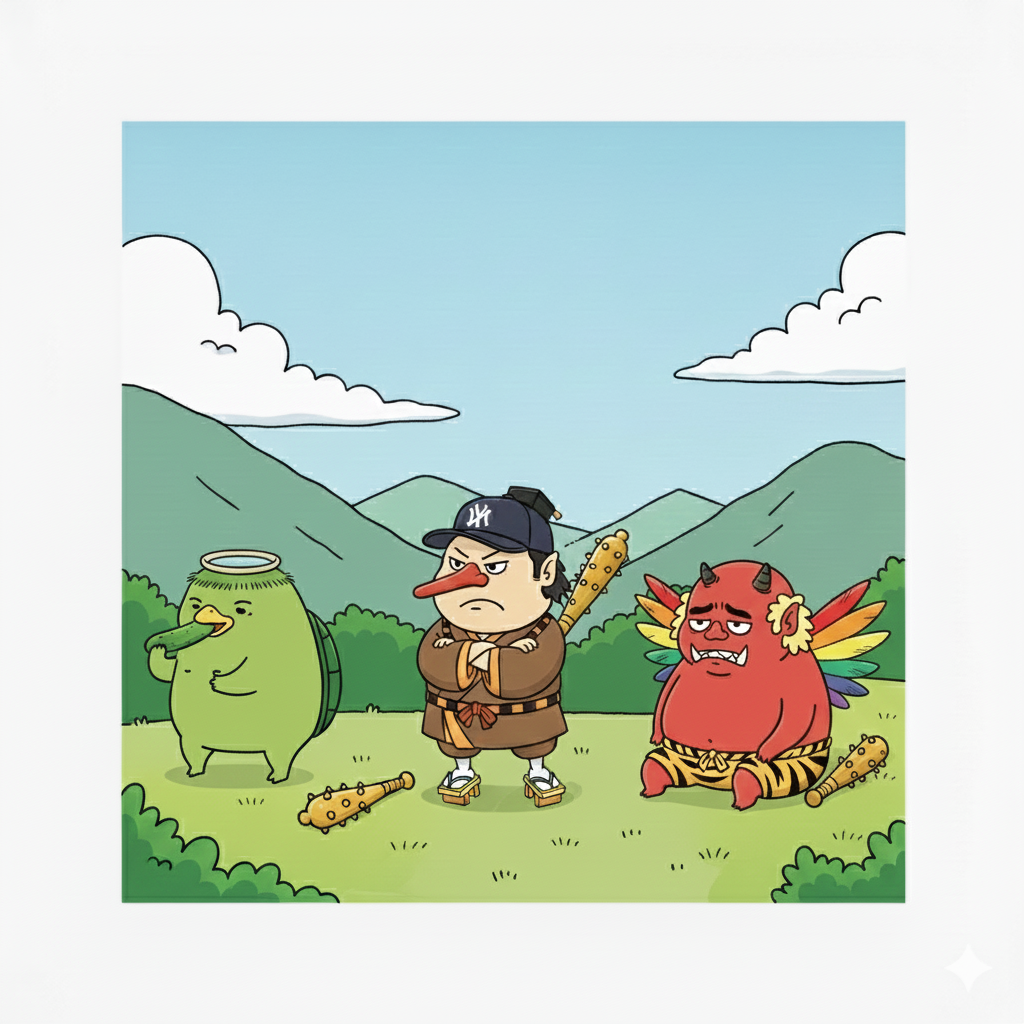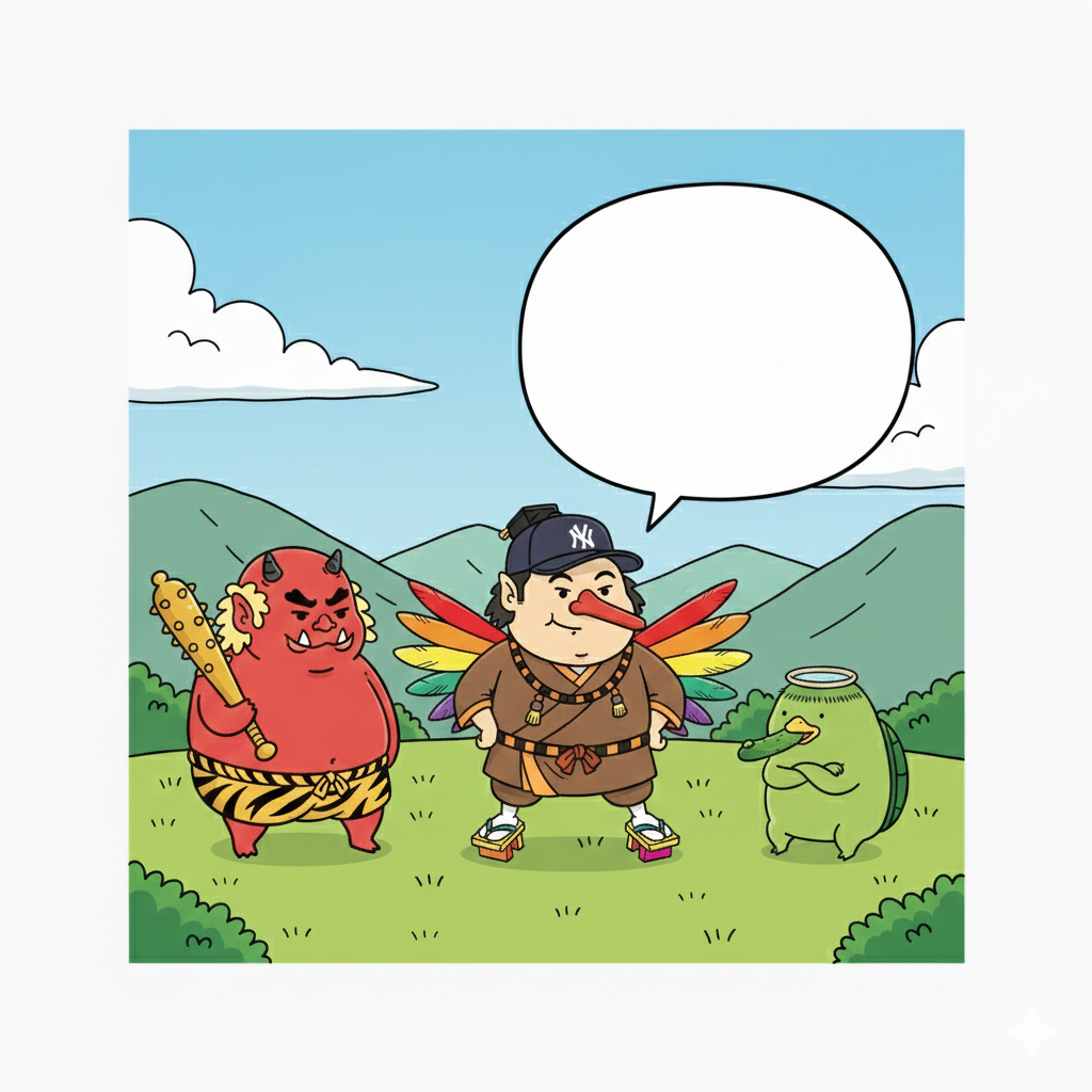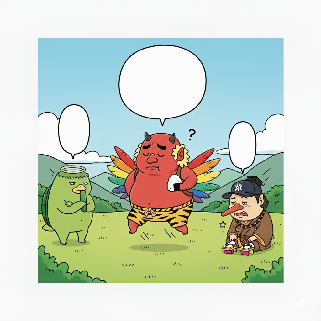 そして、この3人の妖怪を主人公にした4コマ漫画を作成