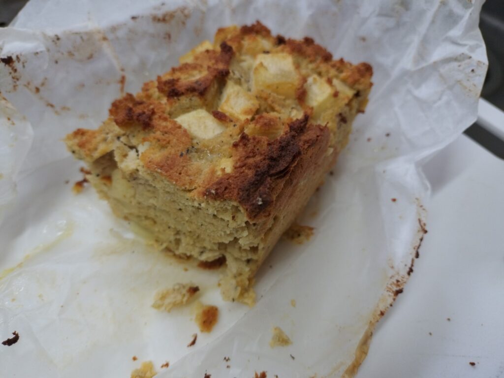 リンゴをたくさん使うと、焼いている間に水分が出てきて水っぽくなってしまいます。それで、リンゴもやや少なめに。