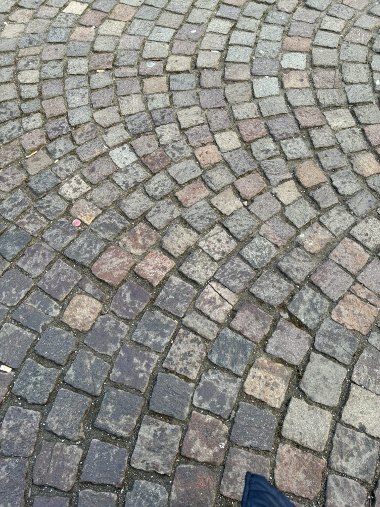 ヨーロッパに行くと、地面の石畳みに感激します(二カ国しか行ったことがないのですが)。日本の道路と違うこの石畳が、気に入っています。教会などの建物も、町の通りに溶け込んでいるようで、日本とは作りが違うなあと思います。地震が、ほとんどないから、古くからの建物がたくさんあります。