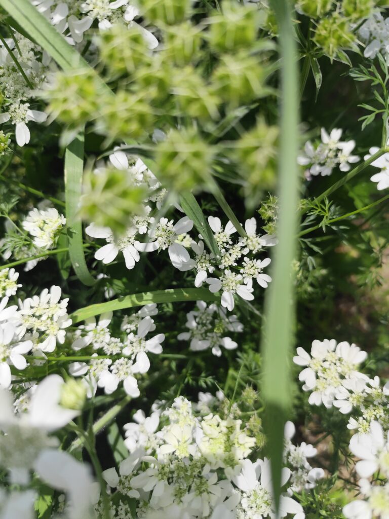 名前を調べてみたら、「ホワイトレース」でした。細いレース糸で編んだテーブルセンターのようです。か細いけれど、りんとして咲いています。