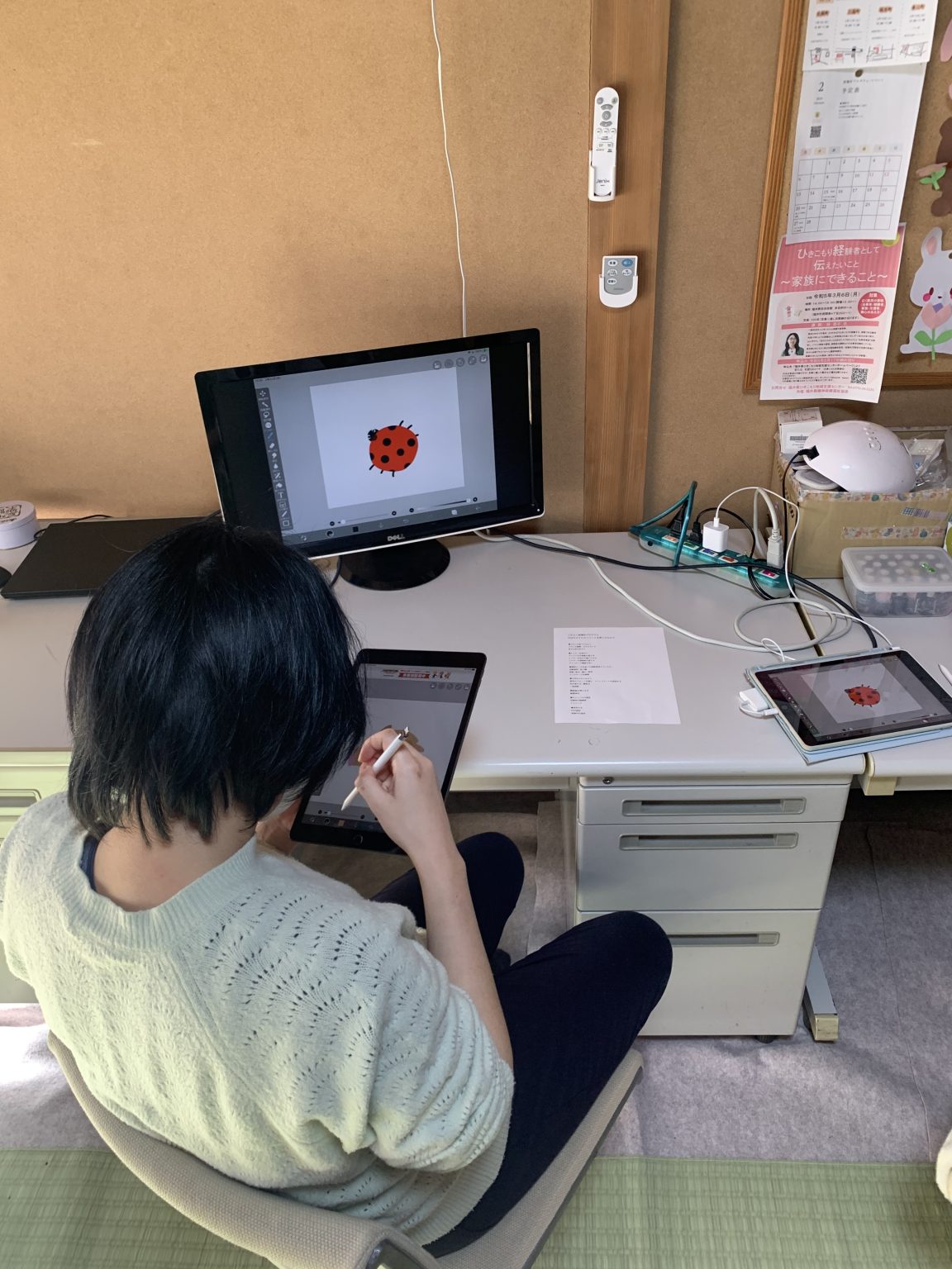 アイビスペイントというアプリを使ってお絵描き講座をしています。絵を習うというのではなく機能の使い方がメインです。一回目だけ予約してもらい、その後は自由にお使いいただけます。